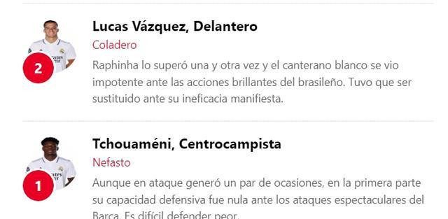 赛后啊,《逐日体育报》给皇马的球员们打分,后果巴斯克斯、琼阿梅尼和卡马文加这哥仨,毫无悬念地被当成了“皇马罪东谈主”。为啥呢?就因为这4个丢球啊,基本上齐是他们仨“作”出来的。