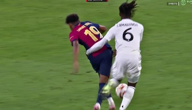 这不是最过分的,他还拉到亚马尔的腰,平直就给东谈主抱摔了。按照这个情况,那不得给两张黄牌罚下啊,好在主裁吉尔 - 曼萨诺还算是有点情面味儿,辖下谅解了。我就以为卡马文加这小子也太大意了,在这样紧要的比赛里,怎样能这样不防御呢?
