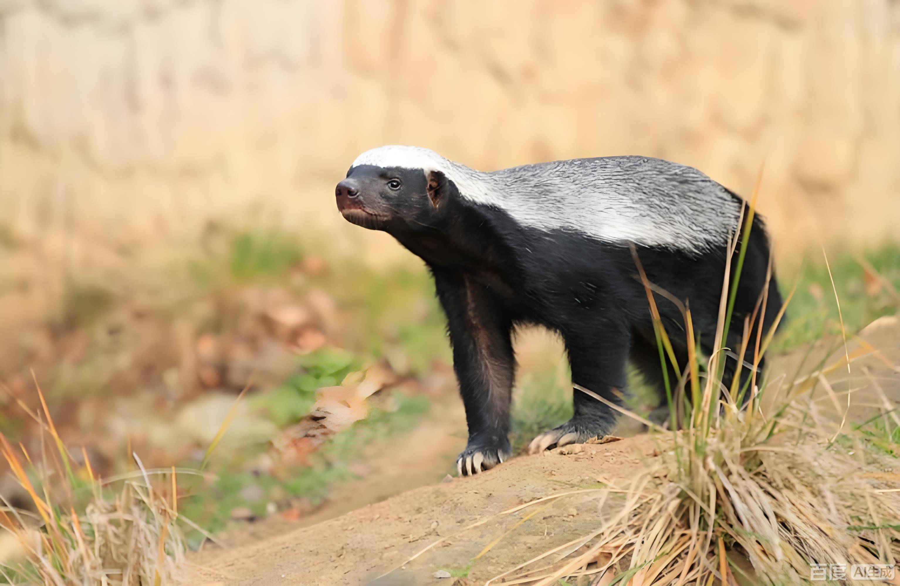 ↑当然界中的蜜獾蜜獾俗称“平头哥”