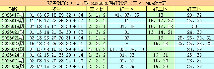 双色球第2026026期开出奖号为:02、09、16、22、25、29+03,其中红球三区比为2:2:2,蓝球开零碎数、小 号、0路号码。