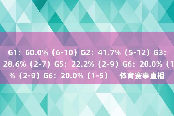 +查看详情11月5日讯 今天,好意思媒NBA World晒出了克莱逐场的三分球掷中率。 G1:60.0%(6-10) G2:41.7%(5-12) G3:36.4%(4-11) G4:28.6%(2-7) G5:22.2%(2-9) G6:20.0%(1-5)体育赛事直播