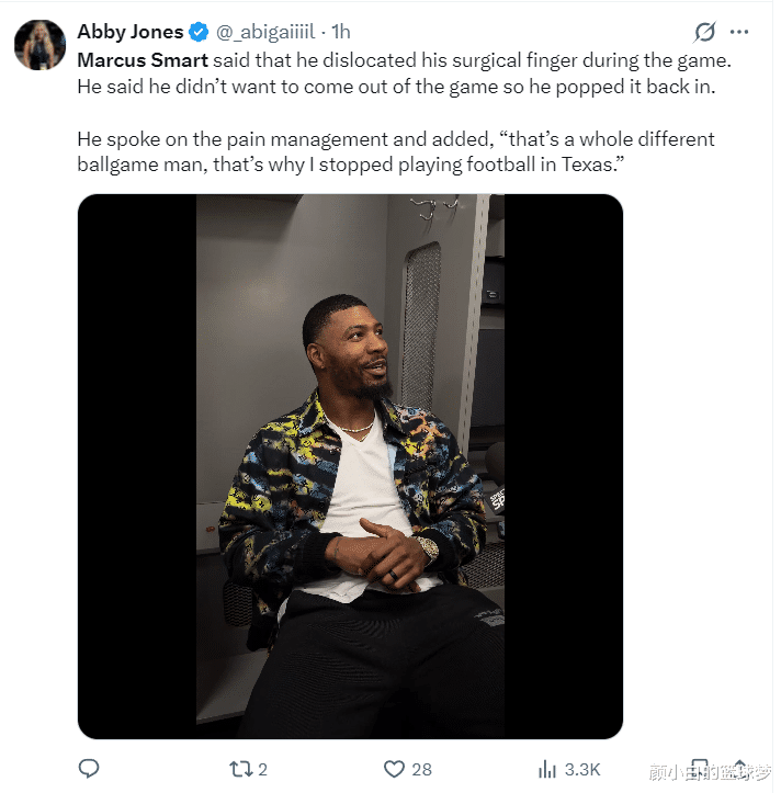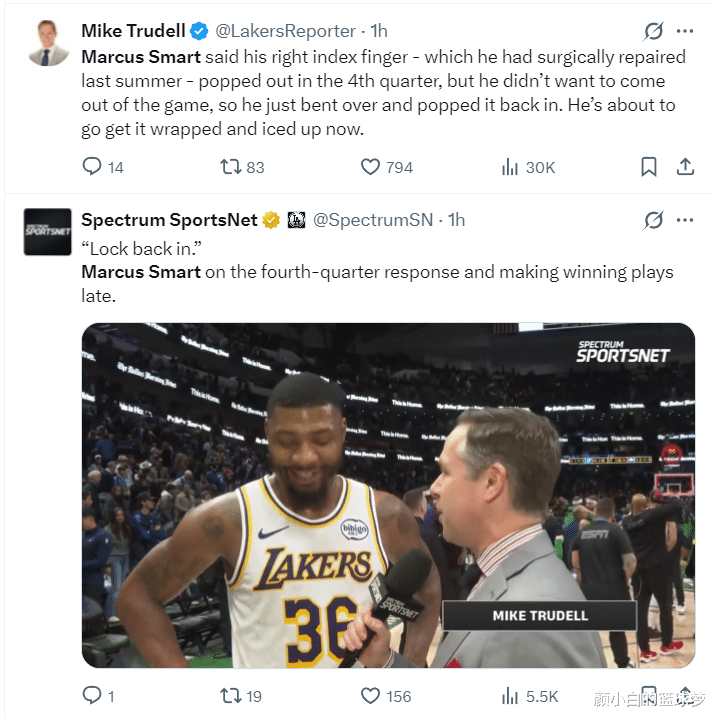 赛后斯玛特在接管采访时说:第四节在一次碎裂球权时我方的右手食指脱臼了,为了我方不被换下场链接匡助球队我只好自行掰正复位,我方的右手食指依然是动过韧带开拓手术的。
