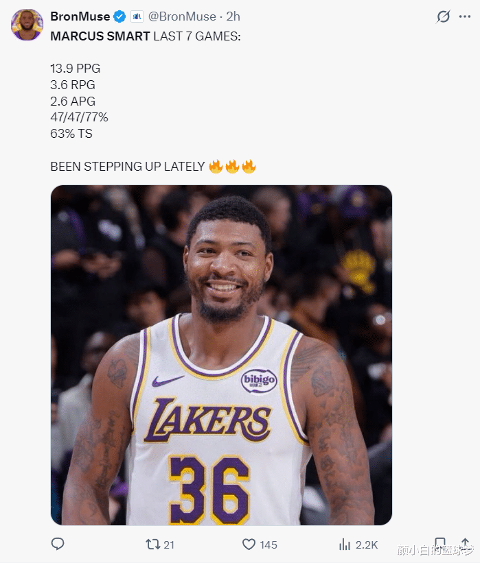 畴昔的7场比赛体育最新信息,斯玛特场均13.9分3.6篮板2.6助攻,射中率47%,三分射中率47%,信得过射中率63%。